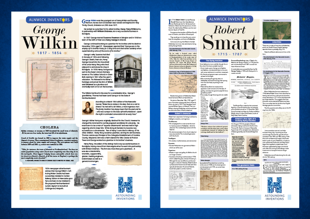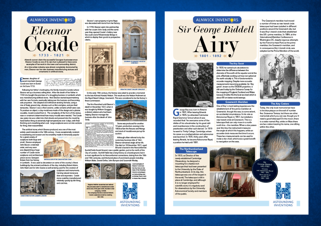 We followed up on last year’s event with more shop window A3 posters and a special Exhibition on the theme of Alnwick Inventors, which were A1 boards.